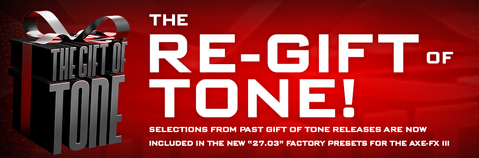 We’re thrilled to announce a major update to our Factory presets! The Gift of Tone presets, created by some of the most talented and respected artists in the industry, are now part of the Factory banks on your Fractal Audio Axe-Fx III, FM9, and FM3. Every new device will ship with these presets preloaded in the latest firmware and Factory presets – ready to inspire you right out of the box!
