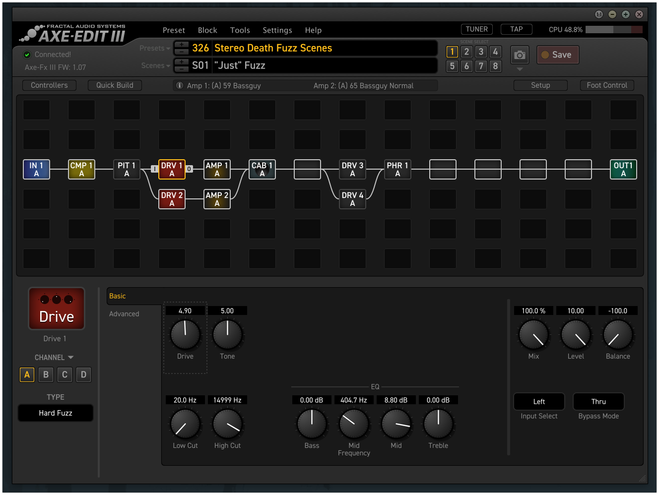 You will immediately discover the advantage of working on a large computer screen with a full keyboard and mouse/touchpad. Axe-Edit III makes it even easier to create and dial in even the most complex setups.