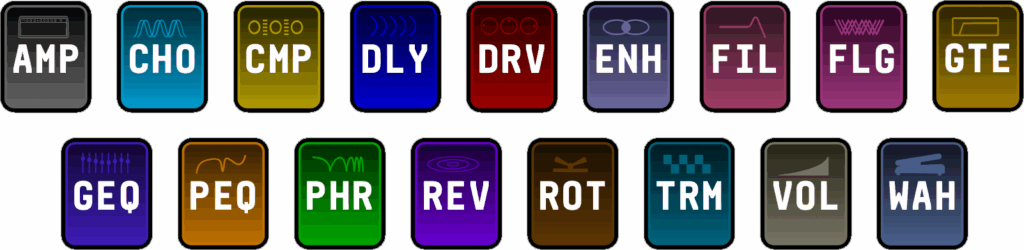 - Legendary Effects – Powered by Axe-Fx III algorithms: dozens of delays, 77+ drives, 79+ reverbs, plus 150+ types across chorus, compressor, flanger, phaser, tremolo, wah, EQ, filter, gate, and more.