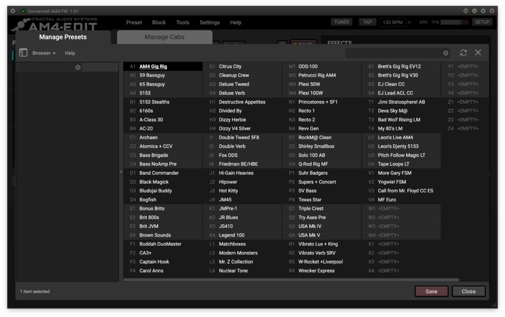 - AM4-Edit – Free editor/librarian for Mac/PC which visualizes the entire AM4. Create and edit presets, import and export cabs, manage system settings. Plus special features like block library, scene manager, and more.