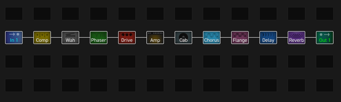 As a multi-effects unit, the FM3 truly excels. It includes a superb selection of Fractal Audio’s state-of-the-art effect algorithms. All of the essentials and many exciting innovations are on board: dazzling drive pedals, dozens of delays, reverbs, compressors, EQs, phasers, flangers and other modulation effects, a looper, and much more.