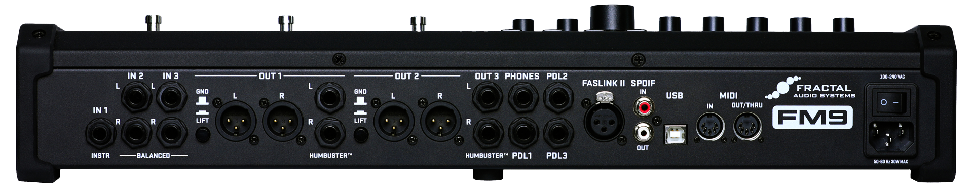 La connessione USB fornisce anche USB-over-MIDI, funzione che può essere utilizzata per consentire a un DAW o altra applicazione di inviare comandi MIDI a FM9, oltre che essere utilizzata per la comunicazione bidirezionale con le applicazioni Fractal-Bot e FM9-Edit - un editor/libreria di altissimo livello incluso gratuitamente.